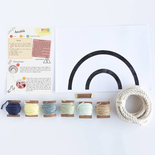 Materials: fils de cotó orgànic (tints lliures de tòxics i metalls pesats), (compleix la normativa EN71-3) (certificat GOTS) / Agulla de brodar amb punta / Didal de fusta / Patró (paper sense àcids i certificat PEFC) / Full d'instruccions (paper sense àcids i certificat PEFC)