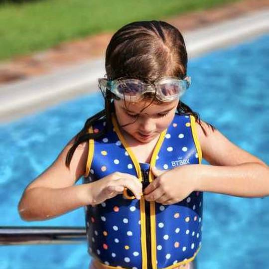 Al seu interior té 8 compartiments, cadascun d'ells amb 3 peces que proporcionen la flotabilitat al voltant del tors i que es poden anar traient segons el nen/a va agafant més confiança i desimboltura a l'aigua.