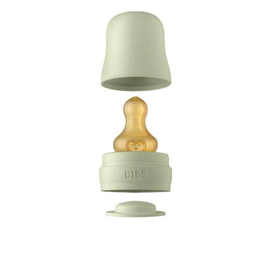 Biberó compost per ampolla de vidre, tetina rodona, tapa, disc segellador perfecte per evitar que es vessi en agitar el biberó. A més, també inclou un embut plegable per poder tirar la llet en pols o els cereals més fàcilment per la boca i així evitar vessament.