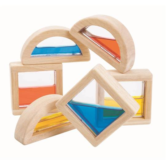 Aquests blocs de fusta es componen de 2 formes amb aigua de color al seu interior.