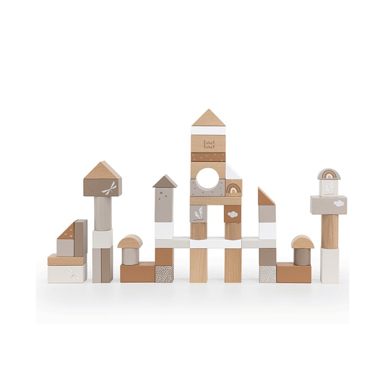 Deixa volar la teva imaginació i fes les creacions més xules amb els blocs de fusta Label Label 50 unitats. Els blocs de fusta estan fets de fusta de faig d'alta qualitat certificada FSC. El conjunt està format per blocs de colors naturals i blocs de bonics colors en torró, blanc i gris. Segur d'utilitzar perquè està fet de pintura a base d'aigua apta per a nens. Amb 50 blocs amb diferents formes, colors, símbols i estampats, aquest conjunt ofereix hores de diversió. La caixa d'emmagatzematge amb nansa facilita l'emmagatzematge i endur-se el conjunt. A més, el conjunt ve amb un llibret amb idees de construcció per començar de seguida.
