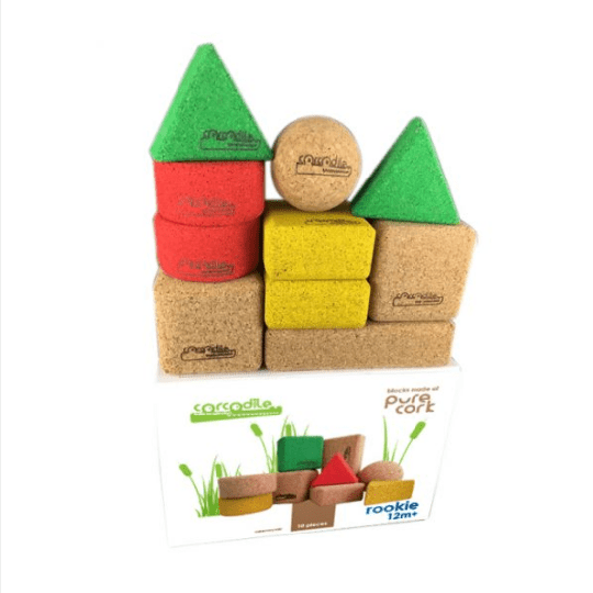 Diferents blocs de construcció de suro ecològic ideal per a nadons, per crear edificis petits i senzills. Fabricat amb suro 100% premsat, produït a partir de fusta renovable al bosc sostenible.