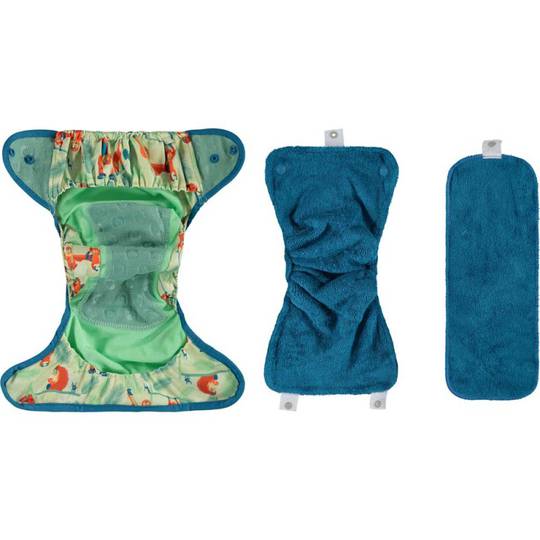 Bolquers de roba rentables amb interior de bambú i super absovent; amb tancament de fermalls a pressió.