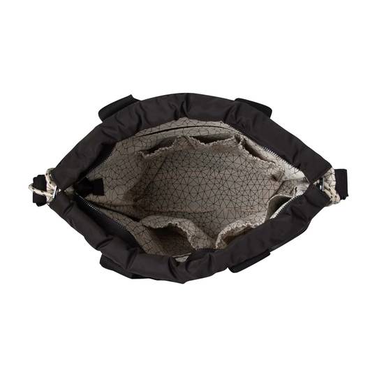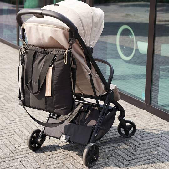 Aquesta elegant bossa per cotxet té un folre amb compartiments d'emmagatzematge molt pràctics per a tots els articles del vostre nadó i també compartiments per guardar les vostres objectes personals. Molt útil quan surts amb el teu nadó. El compartiment principal conté diverses butxaques per organitzar articles per a nadons, com ara bolquers, tovalloletes i xumets. Podeu col·locar fàcilment una ampolla en un dels compartiments laterals. L'interior lleuger és sorprenent i us permet trobar ràpidament les vostres coses. La bossa inclou corretges amb les quals pots enganxar la bossa al cotxet, una bandolera extraïble i un canviador. A més del compartiment principal, hi ha una butxaca separada amb cremallera a la part posterior que és prou gran per a documents i espai per als vostres objectes personals.