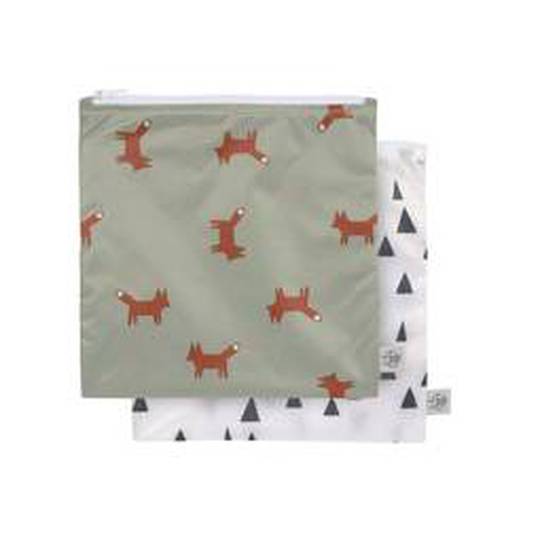 La bossa d'aperitius LÄSSIG amb cremallera i reutilitzable sense BPA amb disseny Fox és pràctica i sostenible. El paquet doble és ideal per emmagatzemar entrepans, fruites, verdures i galetes.