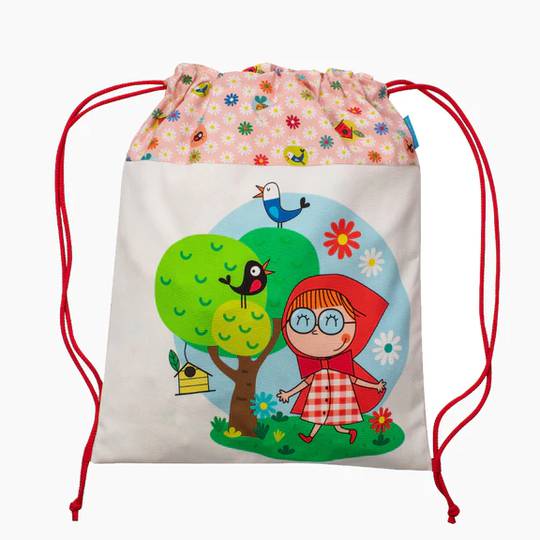 Divertida motxilla infantil amb cordons perquè els infants portin les seves coses a tot arreu. És de tela amb l'interior folrat i porta una agradable combinació de colors