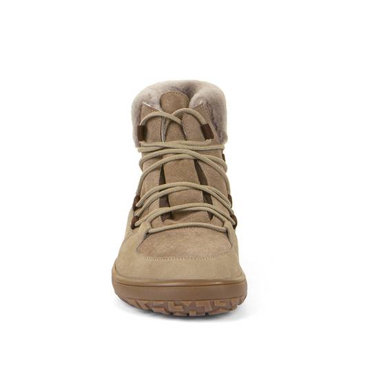 Sabates extra flexibles que imiten estar descalços. Cuir natural repel·lent a l'aigua i ecològic. Sola de goma. Aïllament tèrmic addicional. Adherència extra. Producte i producció sostenibles