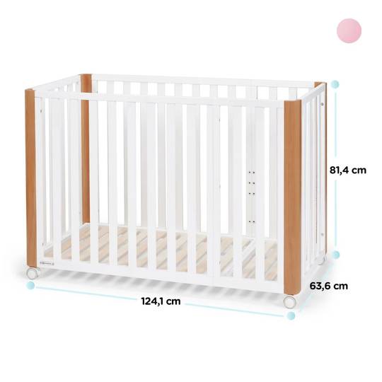 El bressol de nadó KOYA pot ser usat com : collit, bressol de nadó (90 x 60 cm), llit infantil (120 x 60 cm) i parc. Les funcions es combien fàcilment i, per això, la podràs fer servir des dels primers dies fins a aprox. els 2 anys.