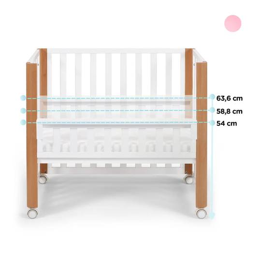 El fons del bressol collit es pot ajustar a 3 altures. Gràcies a això, sense problemes ajustaràs KOYA a l'alçada del teu llit.