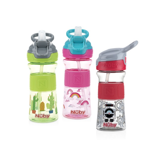 Resistent cantimplora de trità amb canya de silicona, fàcil de netejar. Capacitat de 360ml.