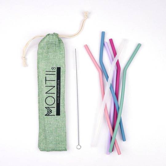 El conjunt inclou 6 palletes de silicona de colors (26 cm de longitud) + raspall de neteja, en una bossa de lli reutilitzable.