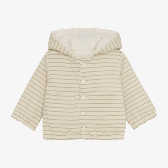 La jaqueta Neddie és reversible, permetent canvis d'estil fàcils. Això vol dir que un dia pots tenir un estampat a ratlles, i l'endemà un estil atemporal. Ho fa adequat per a totes les ocasions. Aquesta jaqueta és molt elegant i a més ofereix molta comoditat. Està feta d'un teixit suau i càlid amb un gran ajust. La jaqueta presenta botons a pressió i una caputxa.