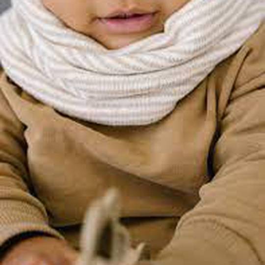 Coll per infants confeccionat amb un teixit de punt molt suau amb un tacte molt agradable. En col·locar-lo genera un drapejat elegant i únic.