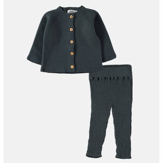 Aquest conjunt de punt format per una jaqueta i uns pantalons de punt de cotó es pot combinar amb les peces de cotó Pima de la nostra col·lecció. Els pantalons de canalé són un model diferent i aporta un toc especial als looks d'hivern.