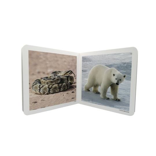 Deu fotografies individuals de: llop (portada), panda orangutan, porc senglar, àguila, serp, ós polar, koala, cangur, cabra salvatge i tortuga.