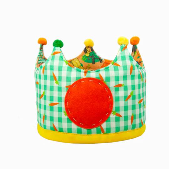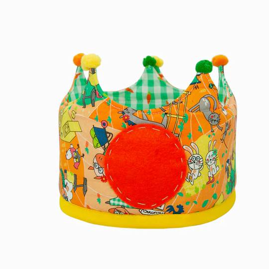 Corona d'aniversari de roba reversible, feta de cotó i farcit de polièster.