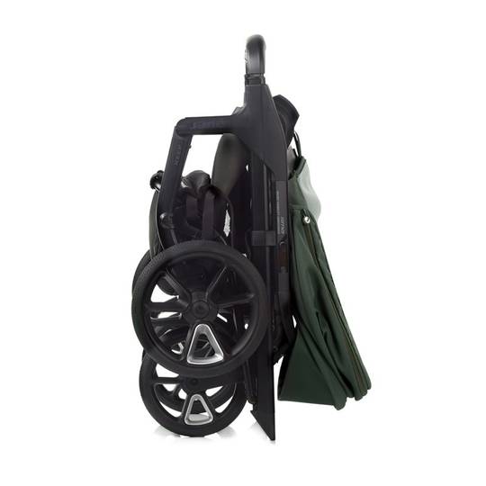 Plegat fàcil i compacte amb la cadira instal·lada en tots dos sentits de la marxa i es manté dempeus sola.