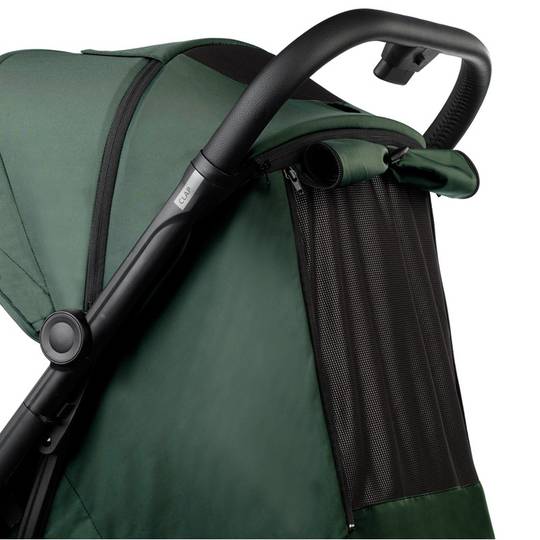 Capota extensible i amb protecció per al vent per a més empara en condicions climàtiques adverses.