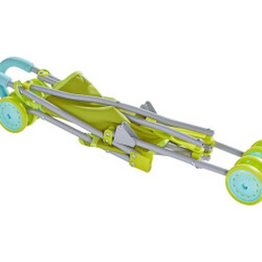 Cotxet per nines de color verd. Es pot plegar i és ideal per transportar i empènyer.