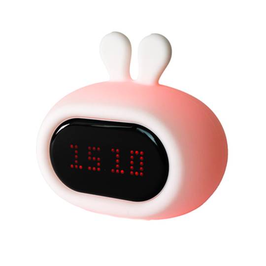 El conillet, brilla en 8 colors, reuneix les funcions d'un llum i un rellotge amb despertador. La pantalla del llum mostra l'hora alternant amb cares alegres, que s'acompanyen de sons igualment divertits.
