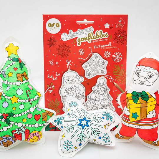 Deixa't endur per la màgia del Nadal amb els Penjolls de Nadal. Aquest paquet inclou 3 pàgines inflables per pintar.