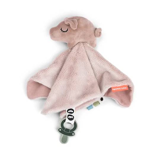 Amb elements sensorials com diferents textures i etiquetes de colors, estimula els petits sentits alhora que proporciona un company suau i acollidor perquè les mans petites l'agafin i l'abracin.