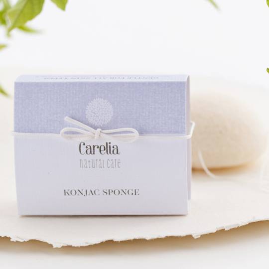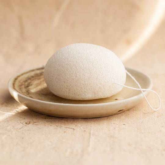 Esponja natural Konjac feta a partir de les fibres vegetals de les arrels de la planta asiàtica Konjac (Amorphophallus konjac).
