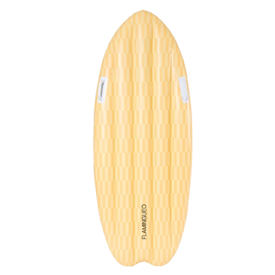 Gaudiu l'estiu amb el nostre flotador groc en forma de taula de surf. L'accessori perfecte per compartir amb amics a la platja o a la piscina.