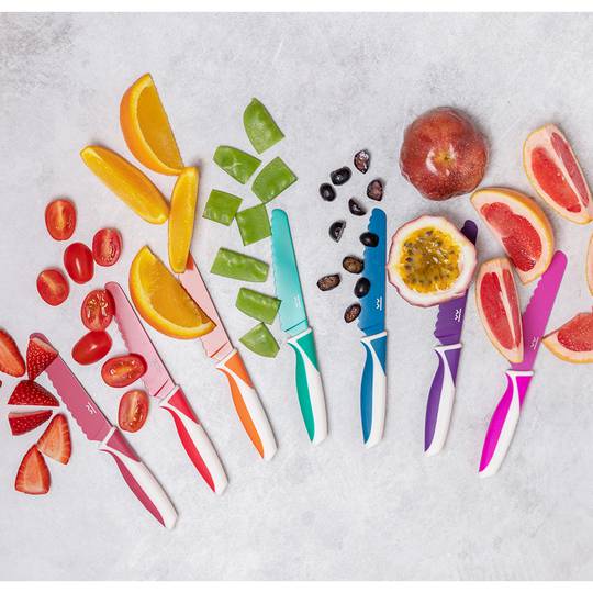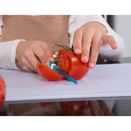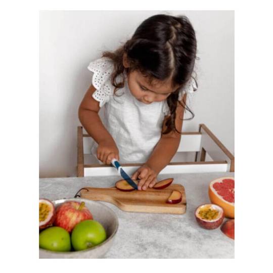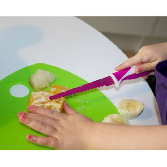 Ganivets que tallen menjar però no tallen dits. Ideals per als infants que desitgen cuinar com fem nosaltres o simplement per ser autosuficients quan menjen.
