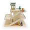 Els nostres animals estan a la carretera buscant un lloc per aparcar els seus cotxets. Utilitzant l'ascensor, pugen al terrat de l'aparcament. A part de l'ascensor, hi ha portes corredisses, una barrera, una benzinera i un garatge tancat, per desafiar la consciència espacial dels nens, la motricitat fina i la seva imaginació sense límits! L'aparcament inclou 4 cotxes i 4 conductors d'animals per garantir hores de diversió i joc. L'aparcament i totes les seves característiques desencadenen el joc d'imaginació, que millora les habilitats socials i la creativitat dels nens. L'aparcament i els accessoris estan fets de fusta 100% certificada FSC©. Totes les pintures d'aquest producte són a base d'aigua, segures per als nens i no tòxiques.