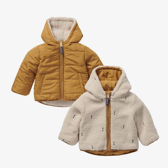 La jaqueta Ordway de Noppies per a nadons és la jaqueta d'hivern perfecta, elegant i minimalista per al teu petit durant els freds mesos d'hivern. La jaqueta es pot portar pels dos costats: d'aquesta manera, tens dos looks en un, cosa que et permet crear diversos conjunts amb només una peça. La jaqueta té una caputxa còmoda, una cremallera i dues butxaques al costat groc.