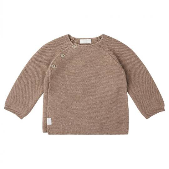 El cardigan Pino té un aspecte de punt, una peça creuada i tres botons pràctics que faciliten molt vestir-se i desvestir-se. Està fet de cotó orgànic súper suau.