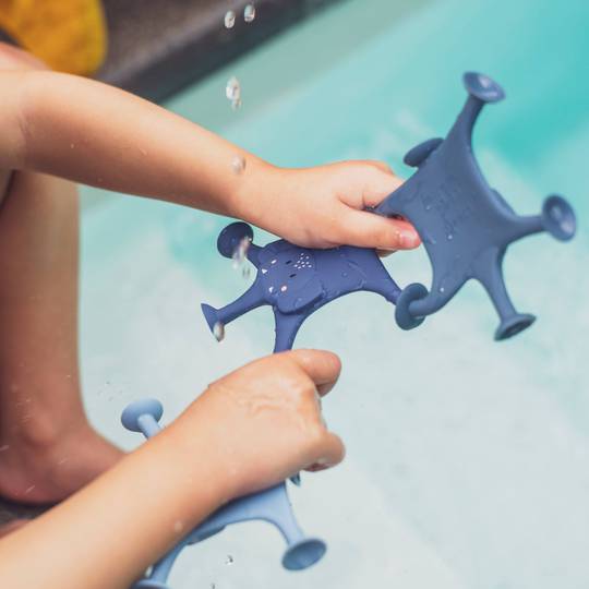 Uneix-te a la diversió amb la família enganxosa de la senyora Elephant mentre suren per la banyera. Els més petits poden gaudir de la diversió d'enganxar i treure aquests animals suaus de les superfícies amb un pop satisfactori, donant-los molta companyia durant l'hora del bany.