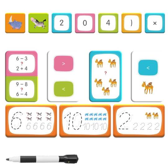 Aquest joc inclou un tauler, 139 fitxes magnètiques i 80 targetes amb diferents operacions matemàtiques. És un joc ideal per aprendre matemàtiques de manera manipulativa i pujant el nivell de dificultat progressivament.