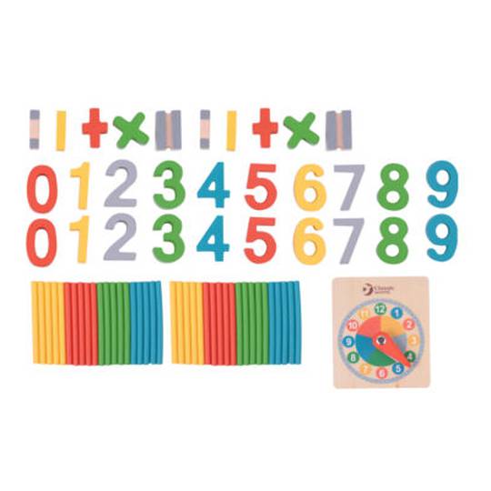 Inclou números, símbols bàsics d’operació matemàtica, comptar pals i un rellotge.