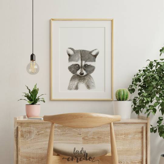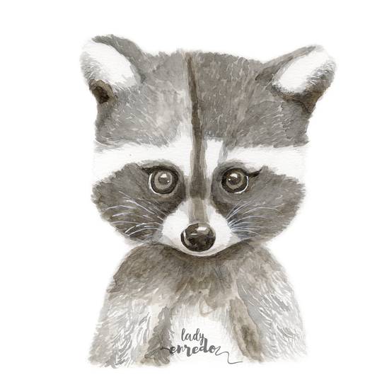 Il·lustració d'un ós rentador en tons gris i negre.