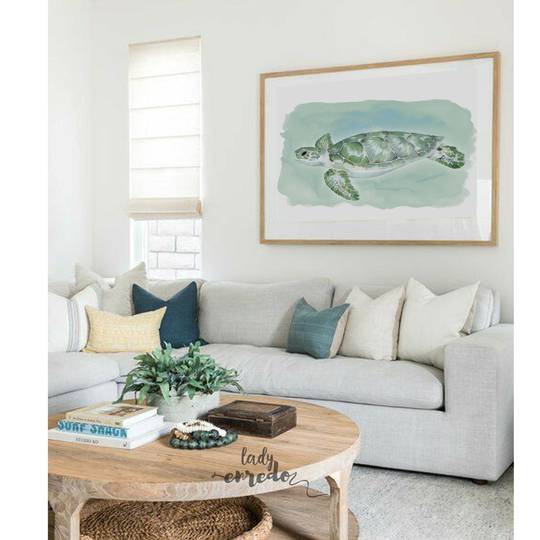Il·lustració d'una tortuga en tons aigua.