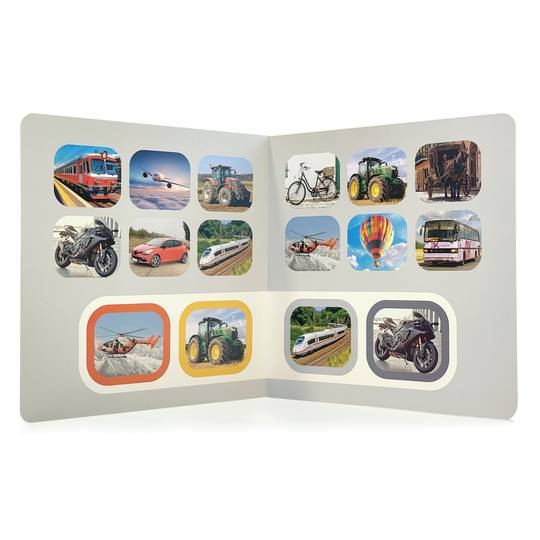 Llibre amb imatges reals per cercar els mitjans de transport més comuns.