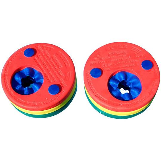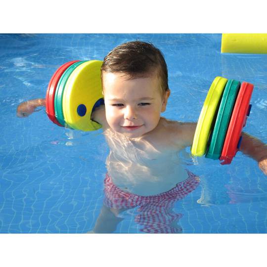 Farem servir 3, 2 o 1 disc en cada braç en funció de l'edat i pes de l'infant. A partir d'aquest punt anirem traient progressivament maneguets de cada braç fins que sense adonar-se'n, i sempre trobant-se l'infant amb estabilitat i seguretat a l'aigua, floti per si sol.