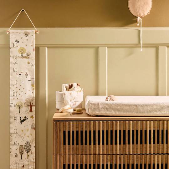 Amb aquesta taula de creixement, pots fer un seguiment del creixement del teu petit. Els simpàtics amics animals afegeixen un toc dolç i divertit a l'habitació del dormitori: una manera encantadora de registrar tots aquests moments de creixement i crear records!
