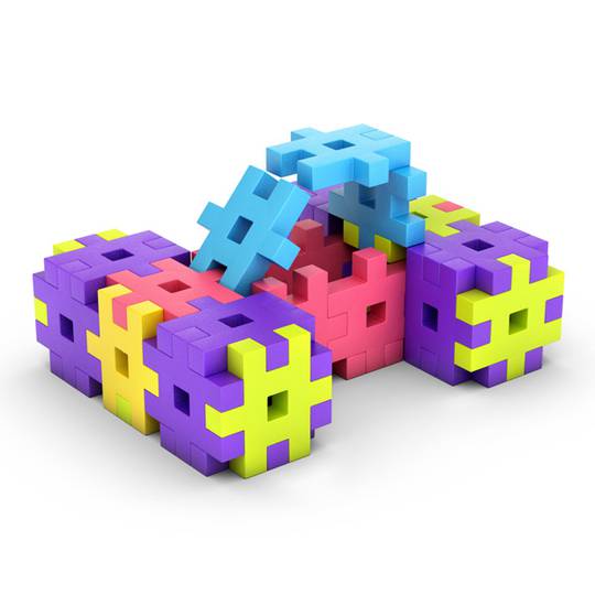 Els blocs són plans i uniformes, en colors agradables i es poden combinar fàcilment entre si utilitzant dents especials que permeten construir formes planes (2D) i espacials (3D).