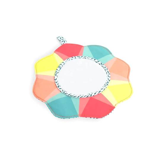 Aquest mirall sensorial per a nadons a partir de 6 mesos en forma de flor té vores en colors contrastats i paper cruixent, com les fulles de veritat. Una joguina ideal per a nadons ple de sorpreses: des de l'emoció de descobrir-se a si mateixos reflectits al mirall, fins a l'espetec de les vores en estrènyer-los, cosa que ajudarà el teu nadó a aprendre a través de l'emoció i al seu desenvolupament cognitiu. Un mirall de seguretat pensat especialment per a nadons de 6 a 12 mesos, que us portarà molts somriures!
