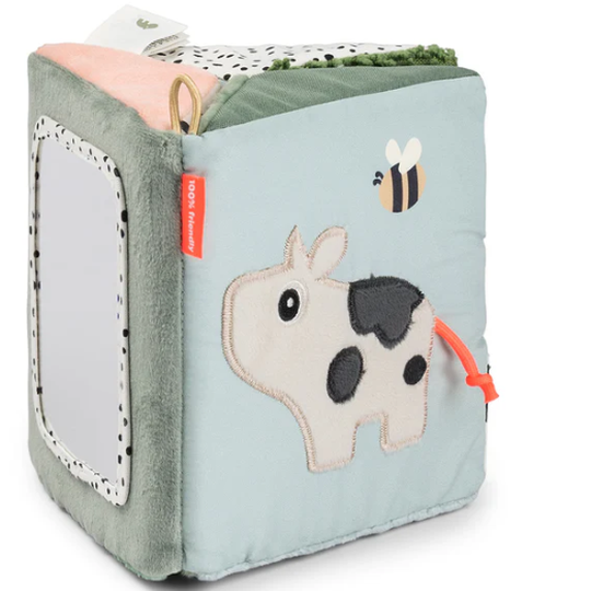 Els estampats cridaners i les cares amigables dels animals de granja capten l’atenció dels més petits, mentre que les textures cruixents i el teixit tou conviden les manetes a tocar, agafar i prémer. El mirall incorporat reflecteix les expressions del teu nadó, perfecte perquè s’entretingui visualment i es descobreixi a si mateix.