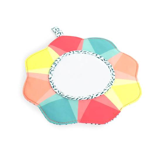 Aquest mirall sensorial per a nadons a partir de 6 mesos en forma de flor té vores en colors contrastats i paper cruixent, com les fulles de veritat. Una joguina ideal per a nadons ple de sorpreses: des de l'emoció de descobrir-se a si mateixos reflectits al mirall, fins a l'espetec de les vores en estrènyer-los, cosa que ajudarà el teu nadó a aprendre a través de l'emoció i al seu desenvolupament cognitiu. Un mirall de seguretat pensat especialment per a nadons de 6 a 12 mesos, que us portarà molts somriures!