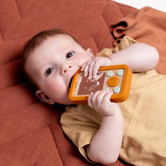 Als més petits els encanta imitar els seus adults, així que els encantarà fer "trucades" amb el seu propi telèfon intel·ligent. Lleuger, de colors vius i encantador de mastegar amb les cantonades arrodonides, el nou telèfon del nadó està fet de fusta de faig amb detalls de silicona suau i molts botons per prémer, a més d'un mirall per fer cares divertides, tot dissenyat intel·ligentment per ajudar-los a desenvolupar la motricitat fina i la coordinació ull-mà.