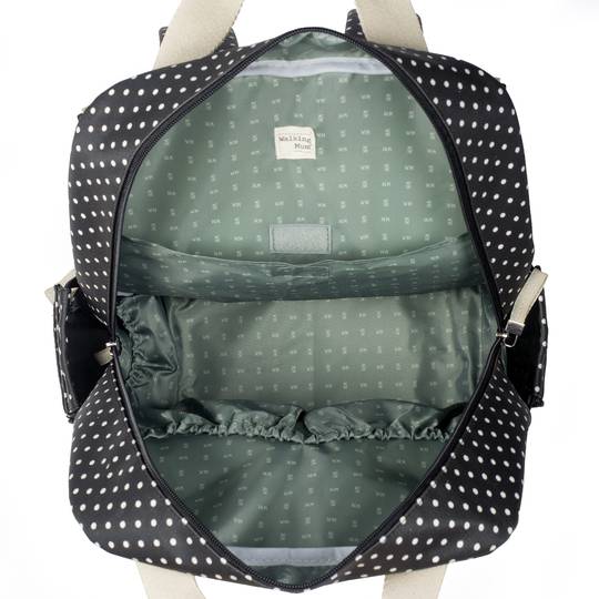 El seu esquema ofereix múltiples butxaques exteriors i interiors per poder-ho tenir tot ordenat ia mà. Té butxaques per guardar els biberons i mantenir-los segurs, elàstics per col·locar coberts, per a les tovalloletes humides, també té un funda per a l'ampolla d'aigua i d'altres.