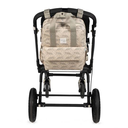 La bossa inclou 2 nanses curtes ajustables que faciliten la col·locació en qualsevol model de cadira de passeig, nanses de mà i corretges encoixinades per penjar a les espatlles cap a l'esquena, sense generar molèsties pel pes.