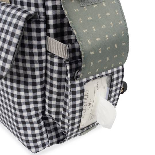 Inclou un canviador a joc amb la bossa de maternitat i una butxaca plastificada per emmagatzemar la roba mullada i aïllar la humitat de la resta de la motxilla.