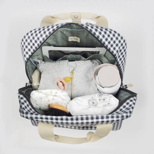 El seu esquema ofereix múltiples butxaques exteriors i interiors per poder-ho tenir tot ordenat ia mà. Té butxaques per guardar els biberons i mantenir-los segurs, elàstics per col·locar coberts, per a les tovalloletes humides, també té un funda per a l'ampolla d'aigua i d'altres.