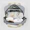 La bossa inclou 2 nanses curtes ajustables que faciliten la col·locació en qualsevol model de cadira de passeig, nanses de mà i corretges encoixinades per penjar a les espatlles cap a l'esquena, sense generar molèsties pel pes.